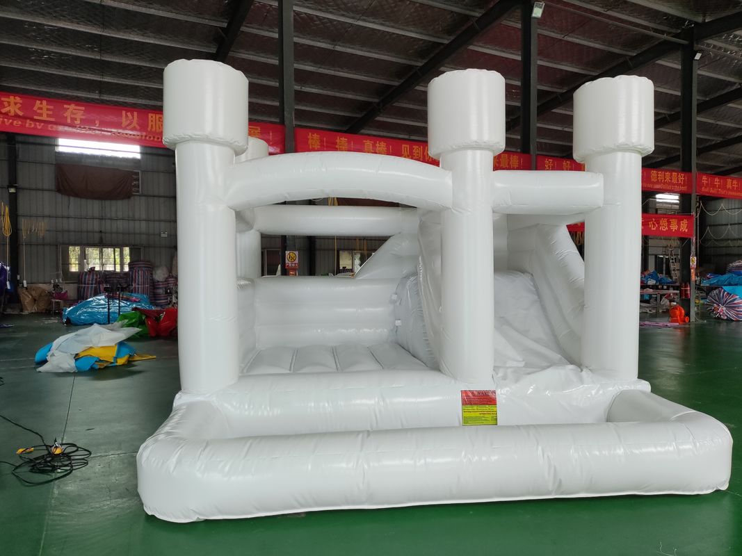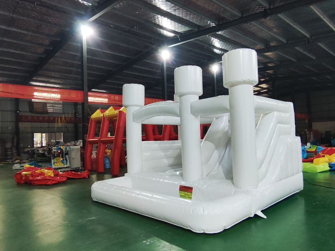 Commercial White Inflatable Bouncer Castle with Slide 0.55mmPVC